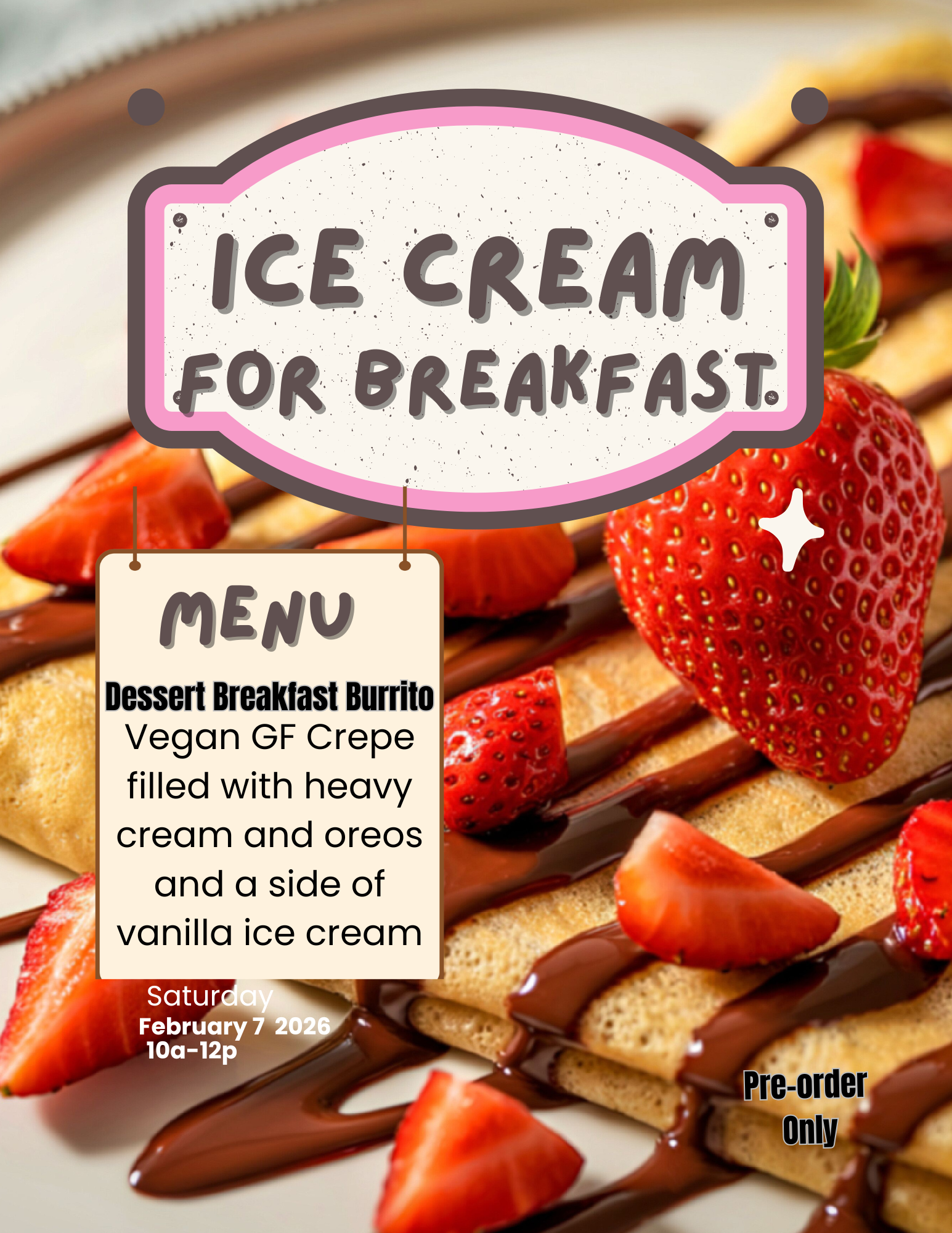 Gluten Free Vegan Crepe filled with heavy whipping cream and oreo cookies with a side of soft serve